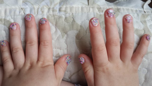 а это она ногти попросила ей накрасить. И присыпку для ногтей сама себе выбрала. Накрасили, иона сразу это сдирает. Потом снова просит накрасить.