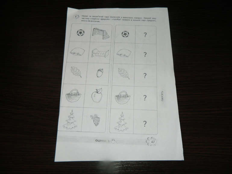 - запоминал предметы на рисунке, потом называл их по памяти.