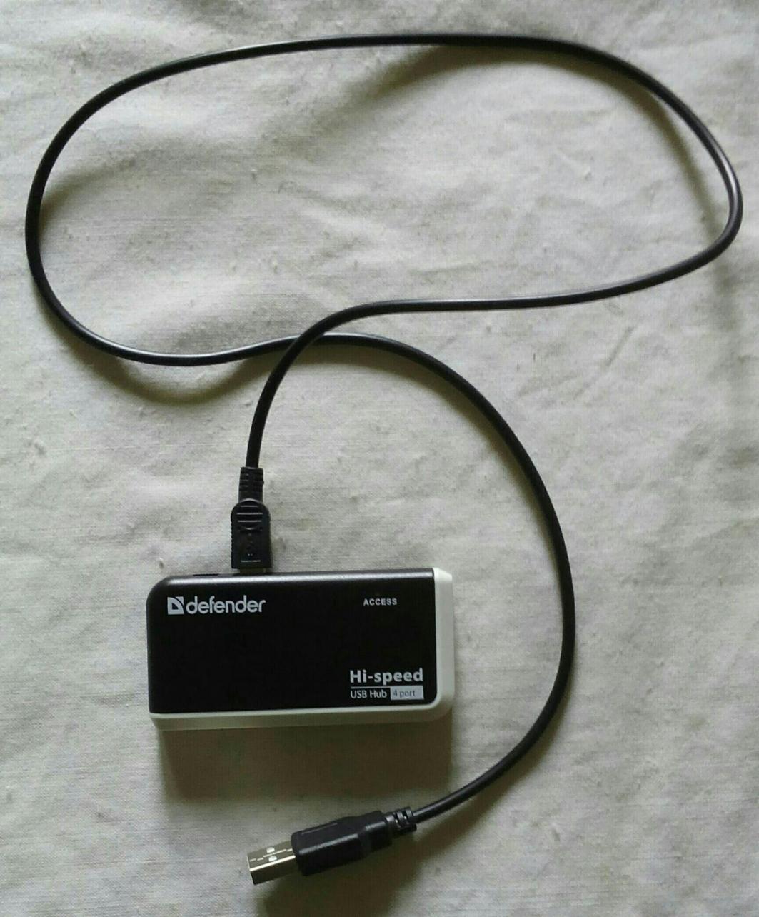 Универсальный USB-разветвитель Defender Quadro Infix USB 2.0, 4 разъёма, USB Type A, чёрно-белый, пластиковый корпус. Он же USB-концентратор, он же USB-хаб. Предназначен для подключения периферийных устройств к компьютеру. Просто не пригодился. Упаковка не прилагается, но был в блистере. Состояние идеальное. Драйвера не нужны, срок годности не ограничен. Питание от юсб-порта, кабели прилагаются. Слотов для карт памяти нет, только юсб.