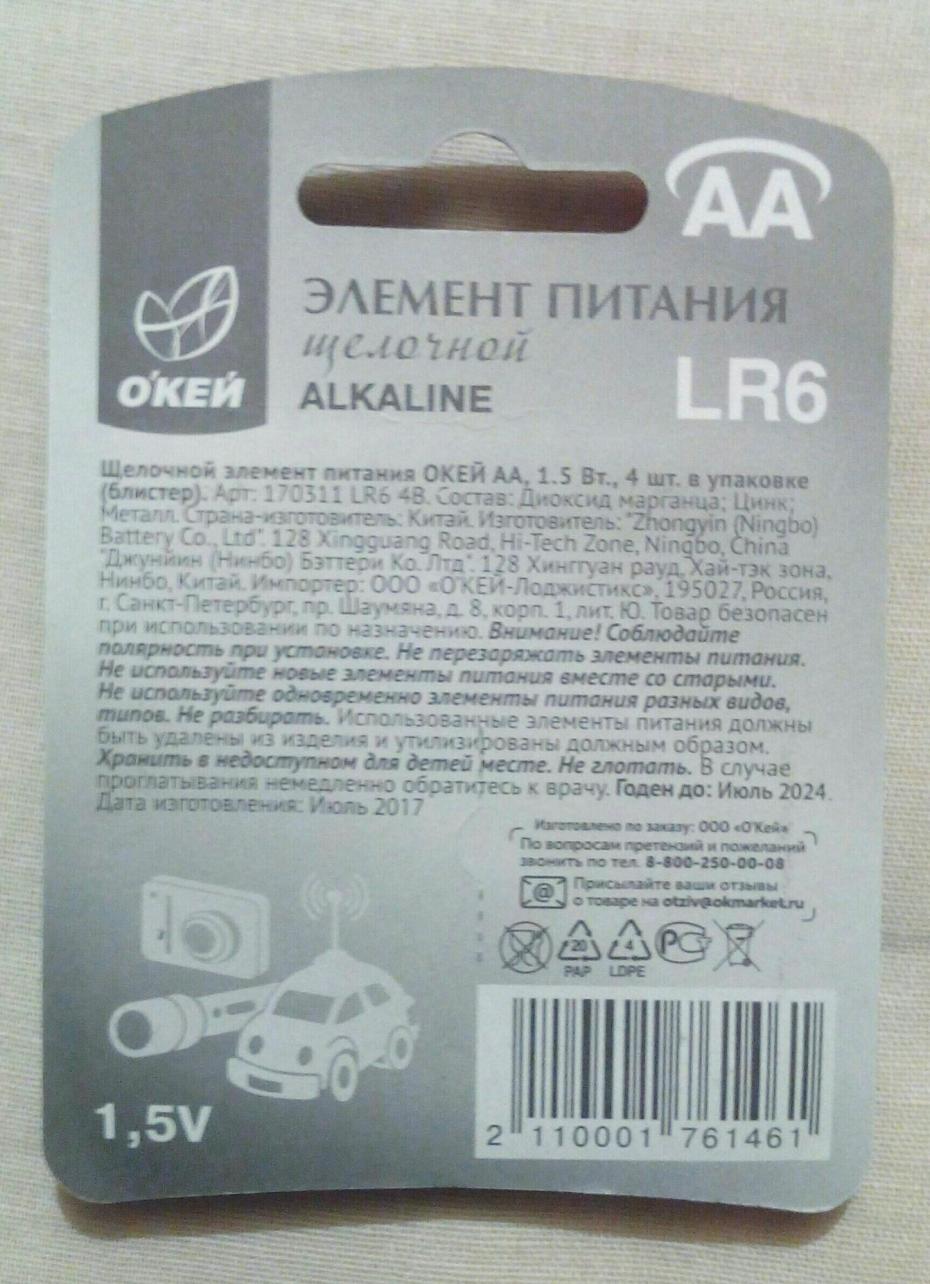 Батарейки О'кей AAA алкалиновые, пальчиковые. LR6, 1,5V. Годны до 07.2024. Цена указана за весь блистер, т.е. за 4 шт. Просто не пригодились. К беспроводным компьютерным мышам - самое оно!