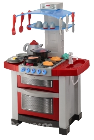 Модная электронная кухня с 28 аксессуарами. В нее так интересно играть. В комплекте много не только посуды, но и продуктов.