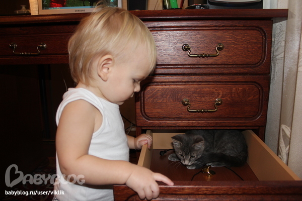 да, мяу жмется к стенке))) это мы тут в гости к сестре моей ходили, у них кошка, так Алинка за ней все с целовашками бегала, бедная зверюша уже не знала, куда деться... вот, видимо, навеяло)))