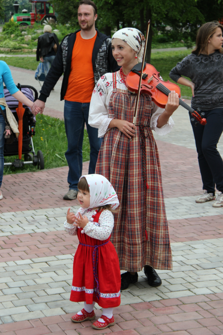 как Алька растетПерепало и на Алькину долю дней славянской письменности и культуры - ребеныш стойко отвыступал со мной пять концертов за четыре дня. Поочаровывала всех, наслушалась комплиментов на дружественных языках, пожала ручку нашему губеру, поумиляла бабушек - в общем, время не пропало даром. Музыкальничает, терпит закулисные будни, почти не плачет под протяжные песни и просится приплясывать под веселые.
