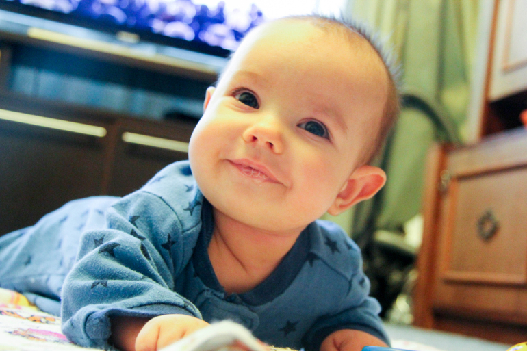 - несколько дней назад освоил переворот со спинки на животик. зачем - не понял, но был очень собой доволен. теперь тренируется.