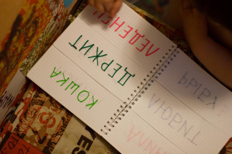 заодно и читать тренируется, ну и интерес налицо! еще ей нравится, когда я ей пишу какие-нибудь сообщения: наши планы, меню на день или что-то в этом духе - тоже читает с удовольствием. или квесты по квартире в поисках "сокровищ": прибегаешь на одно место, там бумажка, на которой написано, куда дальше идти и т.д...