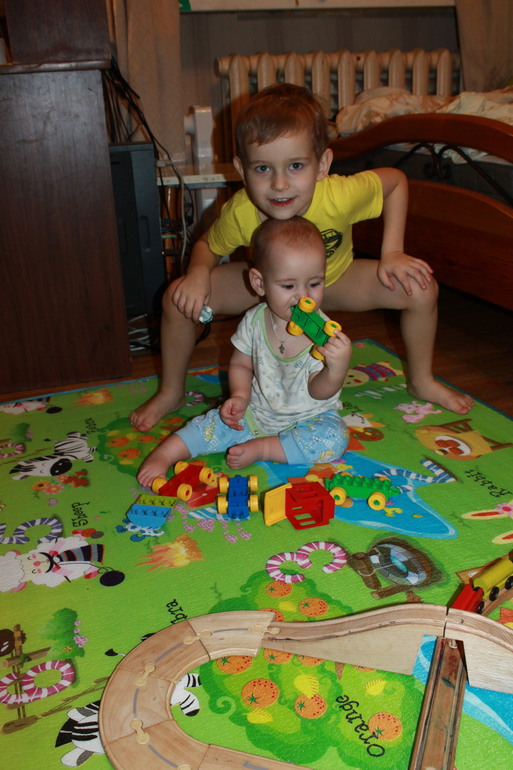 ДетиОчень активный и позитивный малыш. Просыпается всегда с улыбкой. Утром дает мне поспать, просыпается и сам играет. Он вообще много сам играет, например утром мы с Колей успеваем позавтракать, пока Ника играет. В пятницу мне нужно было срочно в душ, так Коля смотрел за Никой, и они хорошо играли 15 минут. Конечно были убраны все опасные игрушки, и заложены подушками углы.