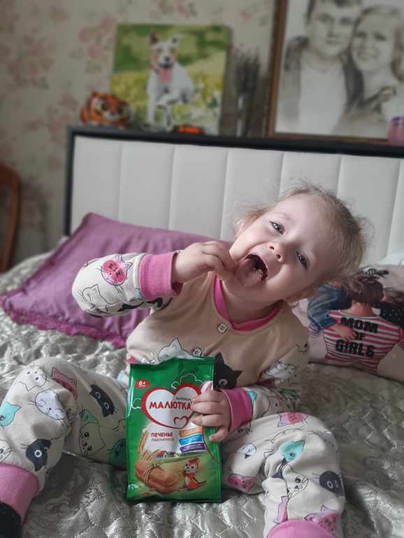 У моей дочки Есении диабет, но это не помеха чтобы полноценно жить и питаться как все обычные дети. Ей сейчас 2,2 года и мы тоже кушаем печенье Малютка пшеничное. Ребенку очень нравится вкус, состав отличный, есть витамины и минералы. Удобно брать с собой на перекус на прогулку или в поездку. Когда были маленькие еще, я растворяла дочке эти печеньки прям в обычном молоке, и она пила как полноценный прием пищи, сытно и полезно, ребенок не голодный. Мы как все обычные дети едим суп за вкусняшку, и эта вкусняшка, печеньки Малютка. Очень любим их❤.
