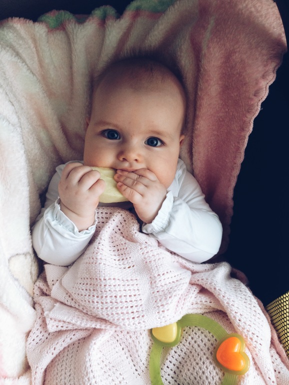 Уже неделю едим кабачок, пока как-то беееее 😆 половина выплёвывается, но консультант по прикорму сказала продолжать даже так. Запиваем прикорм водой из поильника и одновременно чешем десна. Зубов ещё нет. Ну и сушки иногда даю погрызть, очень нравится 🙂