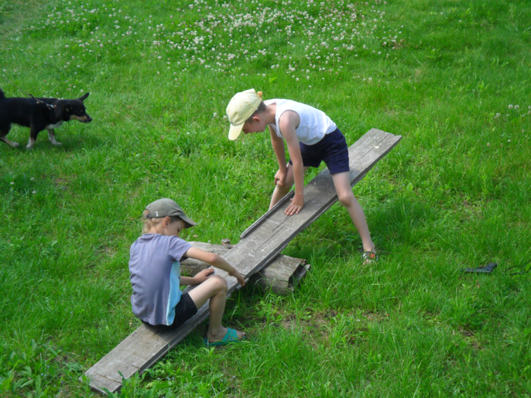 моя жизньСтарший на даче у бабушки изобрёл качели-балансир из подручных материалов :) Теперь вот катаются с другом на пару, изобретатели)))Мало им гамака и обычных качелей