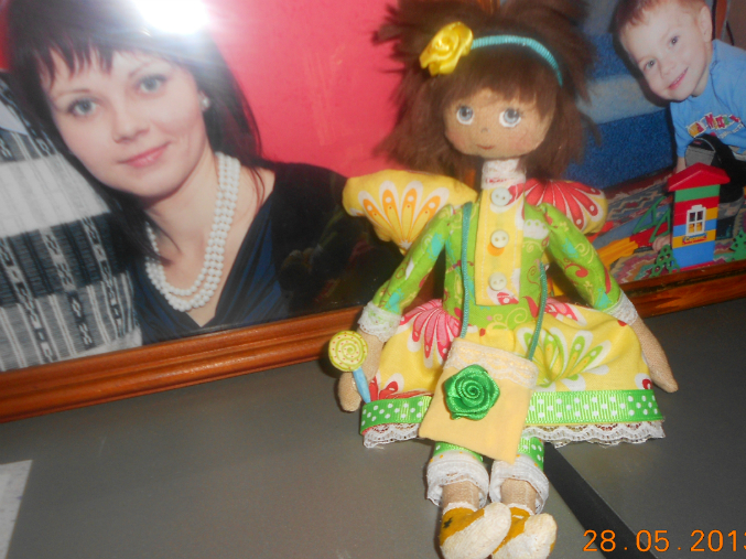 это вобщем то та самая куколка которую я ждала с волнением и даже трепетом.... такой Нина меня увидела и почувсвтовала через экран монитора.. и попала прямо в точку.... может быть внешне и покажется кому то что не похожа . но куколка-Радужка передает именно мой характер и мое настроение!!! она чудо!! сидит вот возле фоточек, а я проходя мимо обязательно поиграю с ней , то так ее посажу , то эдак.....