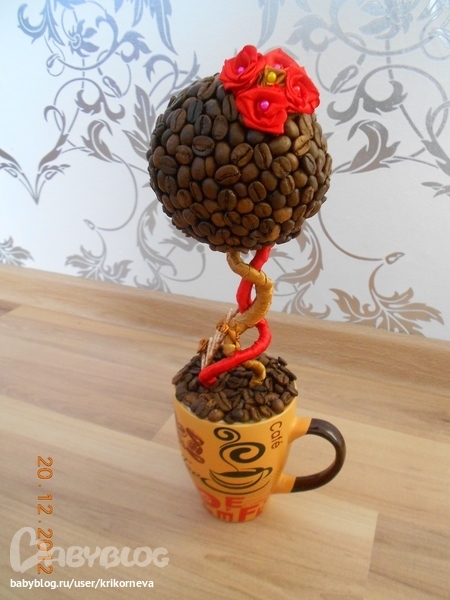 делаю вот такой топиарий на подарок , цвета подобраны в тон кухни, ну вобщем идейка была сразу такой что два цвета переплетаются и в итоге вырастают на шаре цветы....