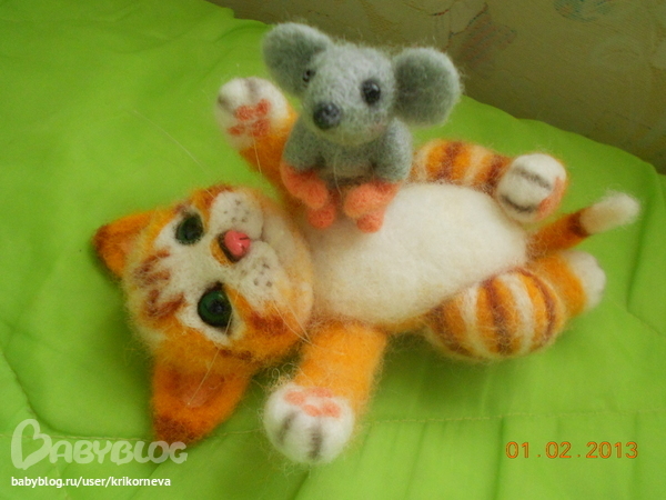 Вчера пришла посылочка от чудесной рукодельницы( блин не умею вставлять ссылку) я конечно видела по фото , что она делает супер зверяток, но в живую они оказались еще лучьше , просто нет слов какая красота!!!! не хочется из рук выпускать)))) милахи такие! я заказывала котеночка, но добрая Светочка прислала мне еще и мышку, чтоб котонку не было скучно! вобщем смотрите сами какое чудо у нас теперь живет!!!