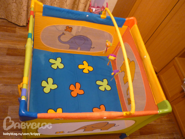 - замок-фиксатор на дне манежа защищает от произвольного складывания