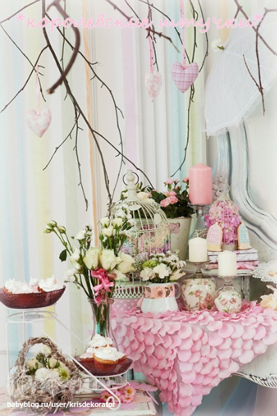 На ветках - сердца из разноцветног хлопка, так же сердца заполняют большую клетку...
