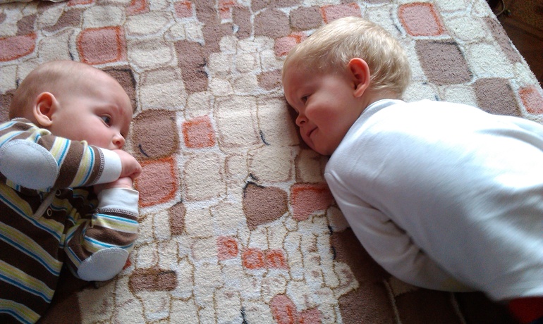 Наконец-то купили Дане детский диванчик, а Диму переселили в Данину кроватку... только вот уж незадача....не желают парни спать на новых местах. Даня засыпает около папы, потом его переносим, а Дима совсем в кроватке спать не желает... кричит и все тут... и спит со мной соответственно) ну меня пока это устраивает..)