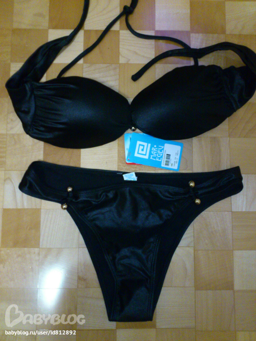 Плавки- низкая посадка, по бокам оригинальные металические вставки.Отстегивающаяся бретель через шею, регулируемая застежка на спине - этот купальник отлично регулируется и подойдет обладательницам любых размеров. Размер L. Цвет церный с отливом, очень красивый.Покупала более 4000 рублей.