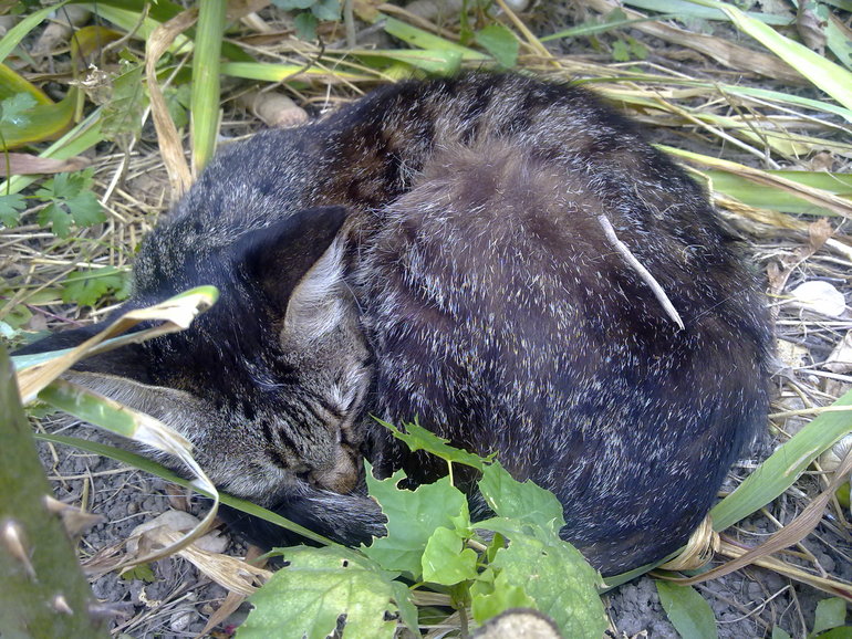 Это дворовая кошка Муся, ей около 6 лет. Месяц назад стала вялой, начала худеть. Вчера отвезли к ветеринару, диагноз - пиометра (гнойное воспаление матки).