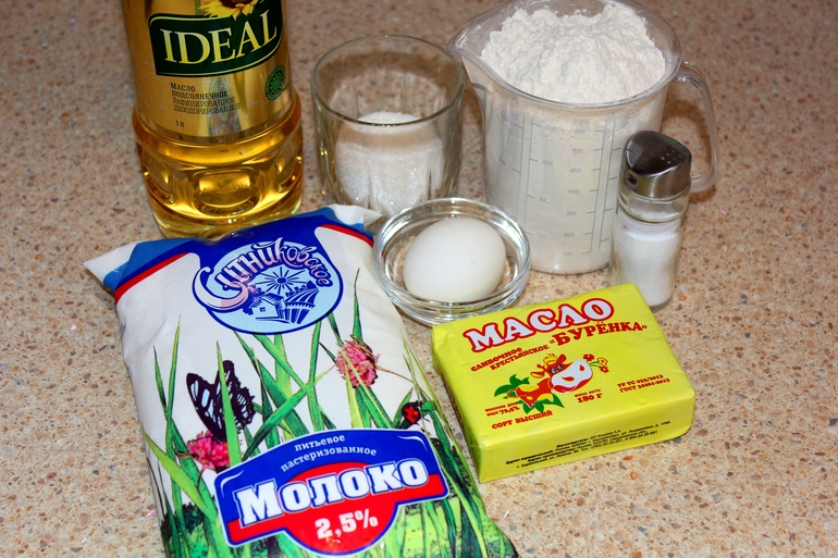 Молоко - 1 стакан, яйцо - 1 шт., дрожжи - 1 пакетик (7 гр.в гранулах), масло сливочное - 50 гр., масло растительное - 2 ст. ложки, мука 4 - 4.5 стакана, соль 1,5 ч. ложки., сахар 1,5 столовые ложки. Тесто готовить безопарным способом. По консистенции тесто для беляшей должно быть или нормальной или более густой консистенции.