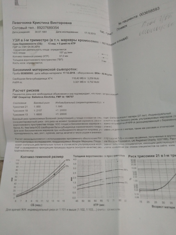 Ну и не переживайте тогда! Эти синдромы на таком сроке очень хорошо видны, а риск ваш не так уж высок, тут читала истории девочек у которых риск был 1:16 и у них не подтвердился синдром. Не переживайте! Врач бы уже увидел отклонения от нормы и давно бы вам сказал.