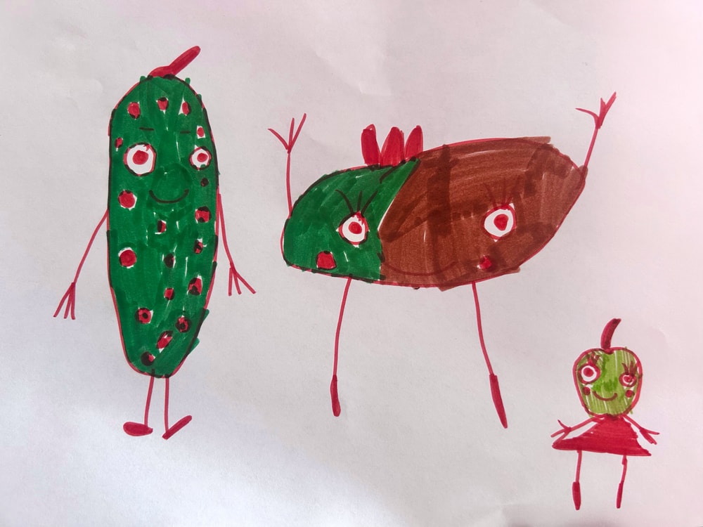 Стеша стала очень активной в плане творчества, вслед за овощами пошли страшилки. Но милые, в её стиле