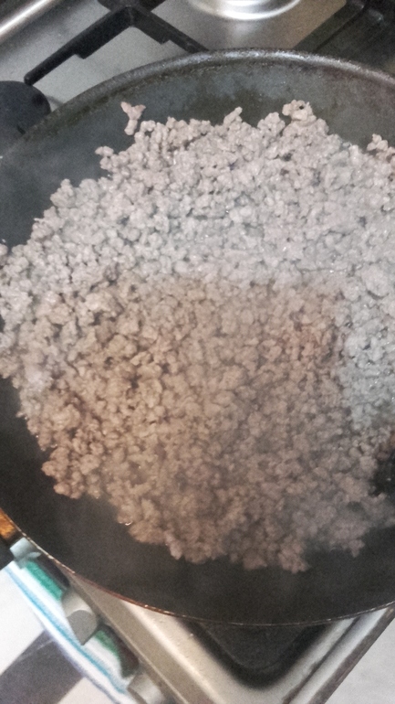 Фарш обжариваем, добавляем соус и тушим минут 10 под крышкой.