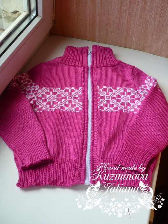 Так называется цвет пряжи, очень красивый. Кофта для девочки 2.5-3 года. Впервые попробовала жаккард.Теперь папа и сын хотят такую же модель кофты.