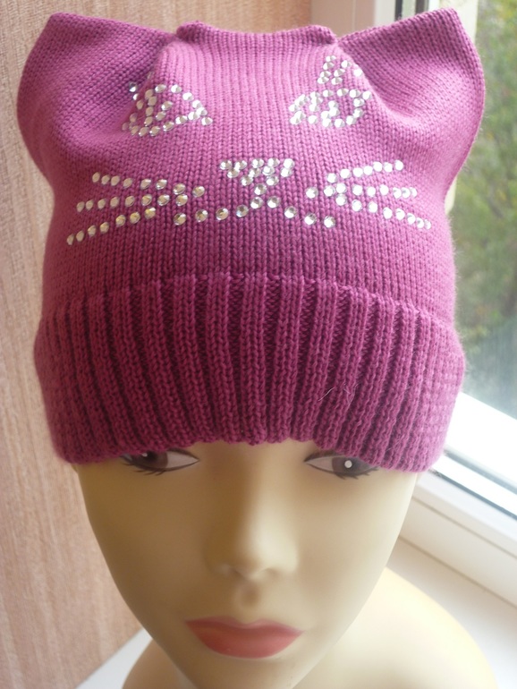 Шапочки двухслойные с ушками и нитяным помпоном-900 р.По желанию добавляю помпон из меха.
