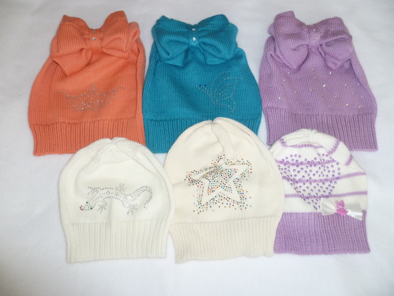Навязались у меня шапочки с бантиками и стразами. Состав везде полушерсть ,на осеннюю погоду.