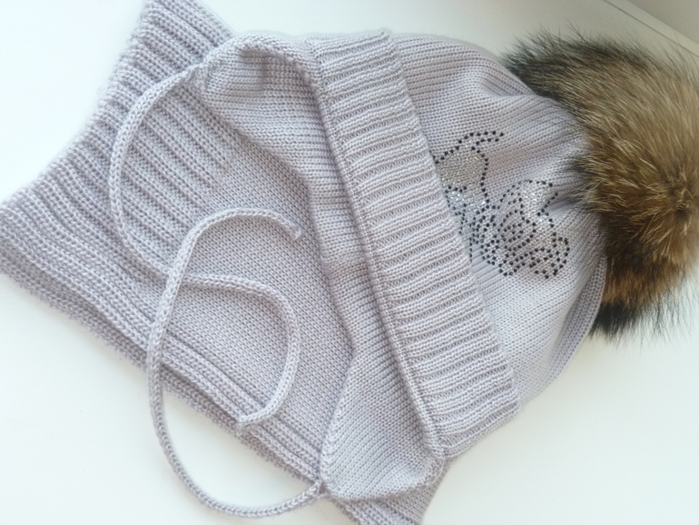 Комплект шапочка двойная , очень тёплая и шарфик с натуральным енотом и стразами. Связала из полушерсти для дочи, но промахнулась с размером.Унисекс, можно мальчику. можно девочке.