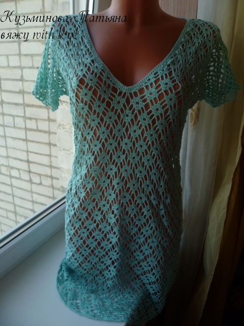 Связала себе тунику к морю. Вот ,что из этого получилось. Нитки Ализе мисс,крючок №2.