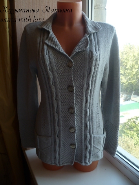 Выкладываю ещё один жакетик. Размер 42-44. Пряжа Ализе Коттон Голд,спицы 2,5. Ушло 400 г почти,может больше.