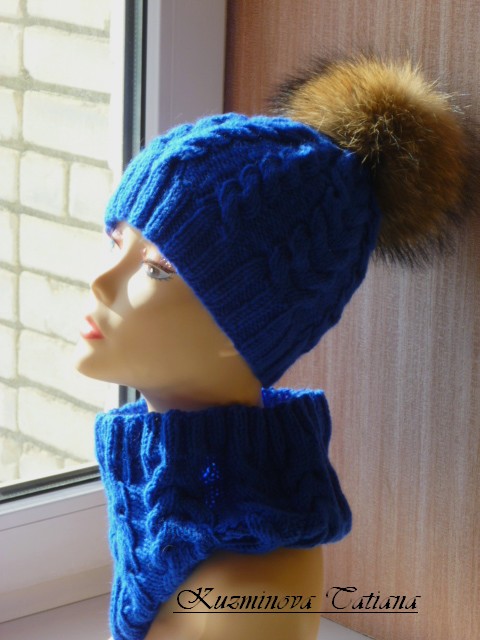 Покажу комплект,который связала недавно. Пряжа полушерсть Ализе Ланаголд,спицы 3,5.Шапочка и снуд,помпон съёмный.