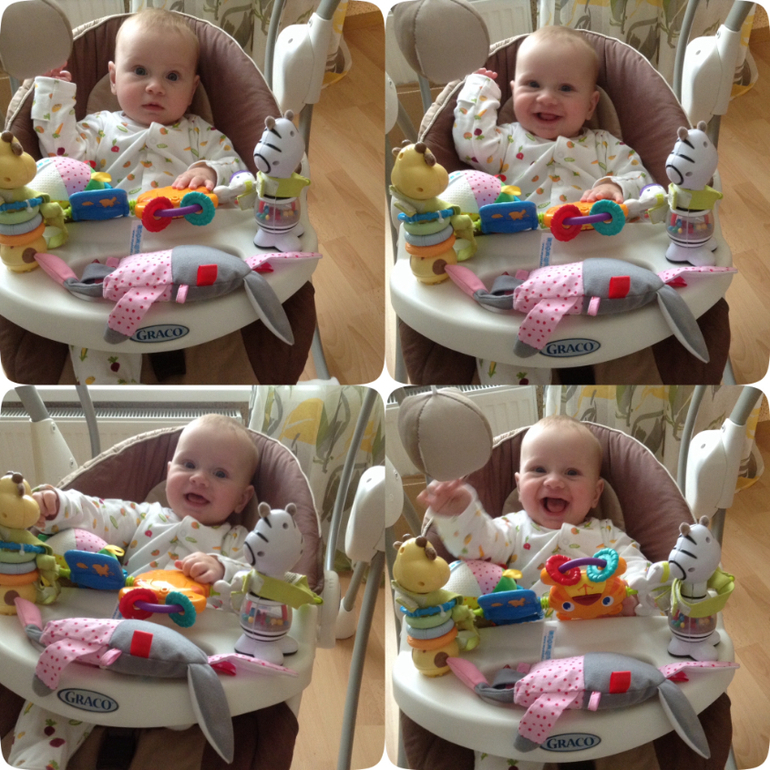 Ползаем на пузике, голый рассекает по всей кровати, с коленок пытается садится, не получается и злится/ругается!!! В коляске сидит через раз, перестал засыпать в ней, теперь часто на улице приходится кормить, тк без этого не уснет((