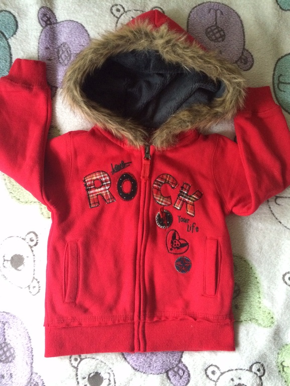 Забавная кофточка на 98 рост, можно раньше, но не позже. В прекрасном сотоянии. Надета 3-4 раза. Модель укорочена, 2 кармана. Тепленькая.