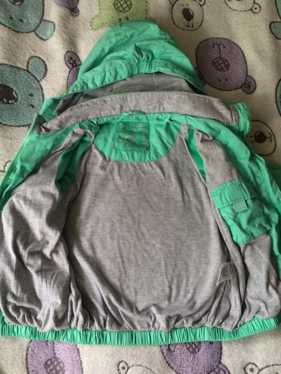 Ветровочка б/у в прекрасном состоянии. После одного ребенка. Размер указан 98, но на мой взгляд с 92 смело можно носить. Хлопковая на хлопковой подкладке. Капюшон тоже на хлопковой подкладке. Капюшон пристегивается кнопками.