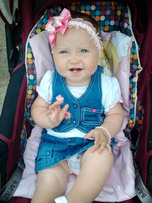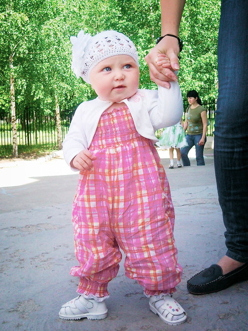 а теперь что Анушка делать не любит: ходить за две ручки любит, но ещё шатаеться, разговоравать совершенно не хочет (очень редко может выдать что-то вроде ДЯДЯДЯ или ТЯТЯТЯТЯ), зато пищит, не машет пока-пока. Ну вот как-то так. Вес у Бусинки 9400 и рост 73см. И как всегда фото;