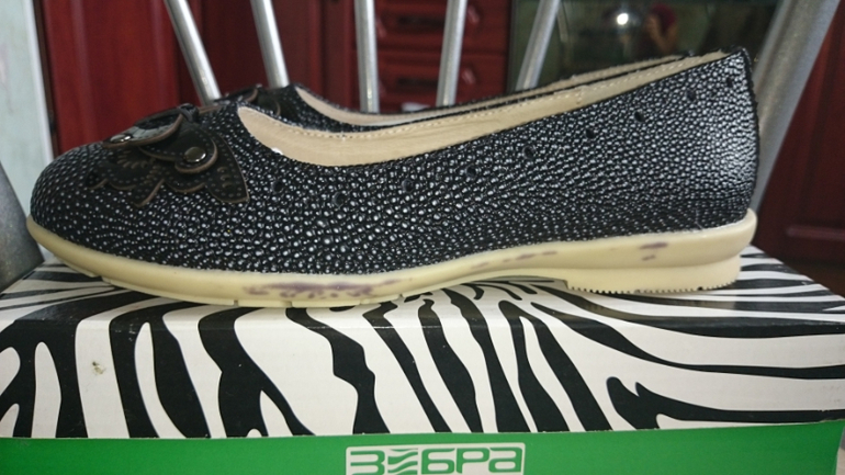 Пока лежали в коробке, отпечаталась на светлой подошве краска, на фото видно.