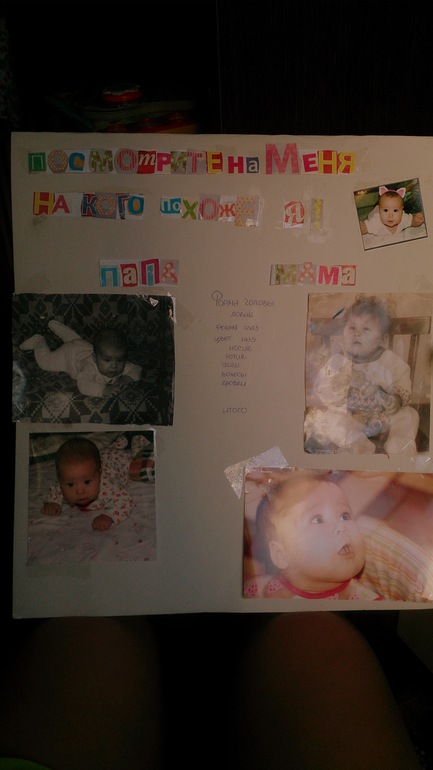 2. Конкурс : "Посмотрите на меня, на кого похожа я?" Если есть фотошоп и принтер, можно сделать куда более красиво и аккуратно, если нет, то как сделала я из журнальных вырезок и распечатанных фотографий: (плакат не доделанный, будут еще рисунки)