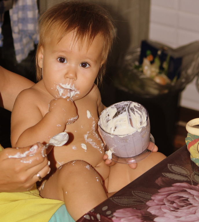 ИЗ за последних 4 клыков был отказ от пищи, ела только грудь и воду, сейчас аппетит есть, но не сильно, видимо из-за грудного вскармиливания, ей все хватает, ест очень плохо :( Но ест супчики, творожный пудинг ей делала, понравился, творожки с сметаной и фруктами взбиваю, тоже кушает, а вот кашки не лезут, любит хлеб, по утрам даю заместо каши с маслом и сыром)) ну и всякие перекусы в виде печенья, соломки, сухарей, такое она тоже грызет.