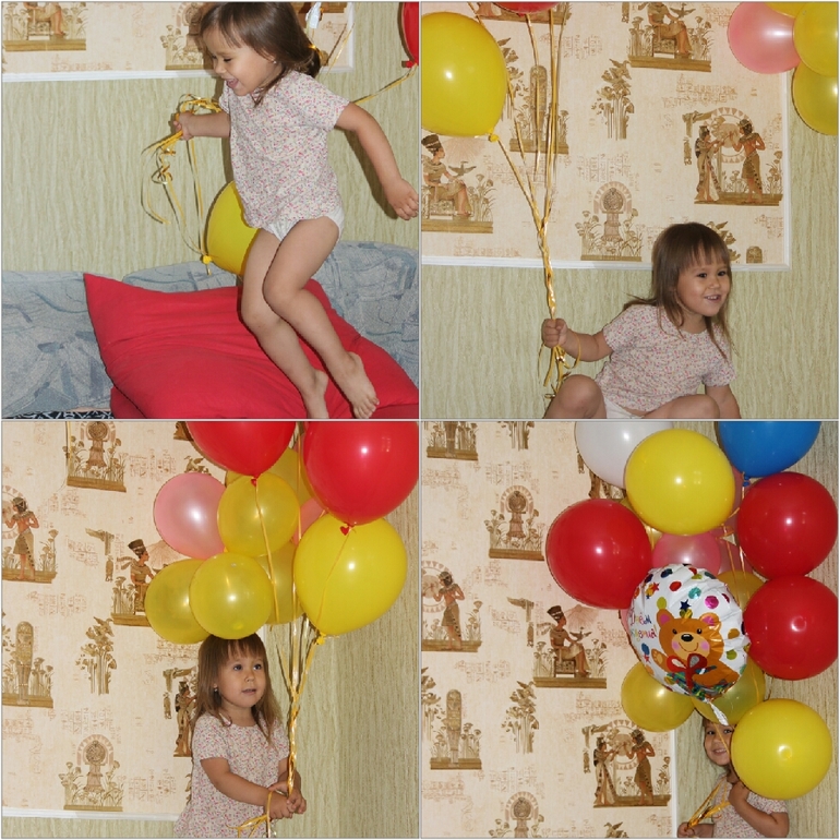 И вот наступило утро 10 июля....дочка просыпается и по началу не понимает, что происходит, почему в комнате так красиво и нарядно))