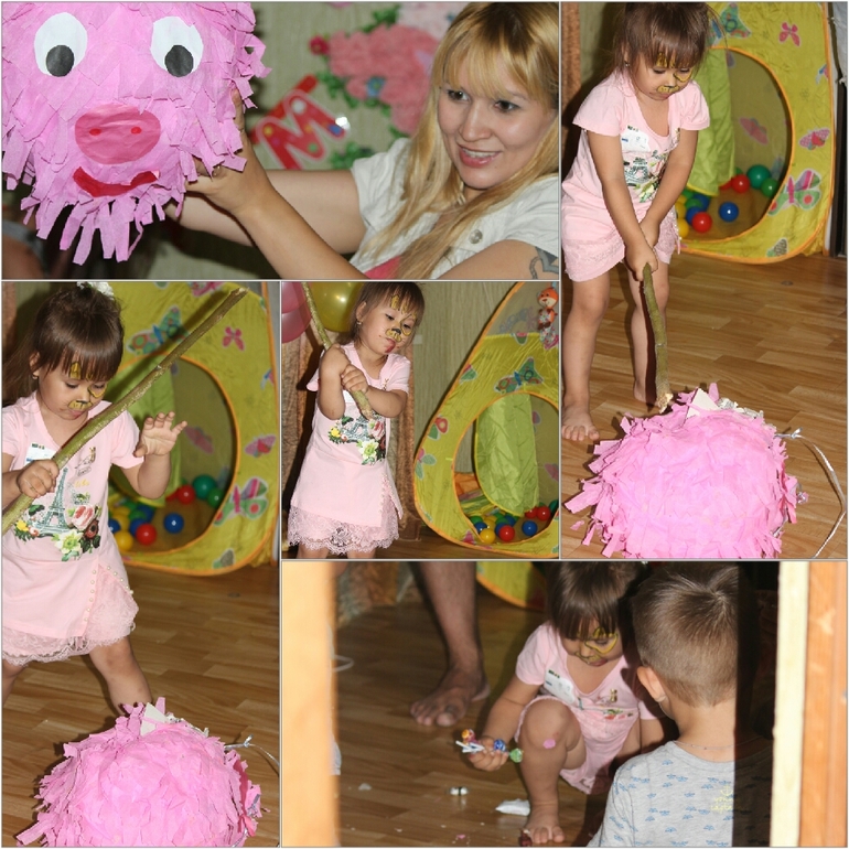 ну и на очередной десерт, когда ушла аниматор, детям я приготовила еще один сюрприз пиньята))