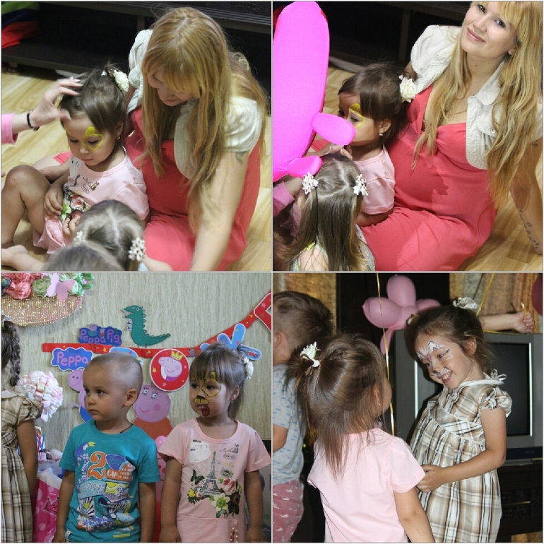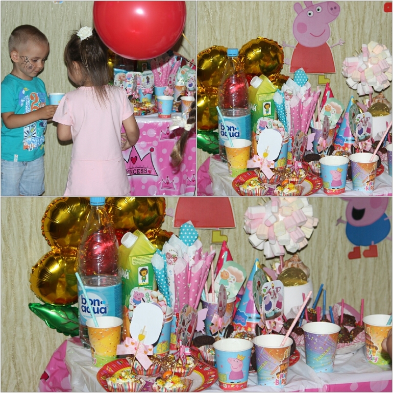 но конечно посидеть толком не получилось, благо аниматор " свинка Пеппа" была настолько классной,что было интересно не только детям, но и взрослым тетям) единственное о чем я горько жалею, что не наняла фотографа в этот день, очень тяжело фотографировать когда толком не умеешь этого делать, итог плачевный, не одной совместной фотографии с гостями, не одной нормальной семейной фотографии, больше половина фоток просто ужасные, размытые и не о чем