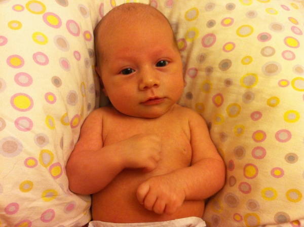 Наконец таки. Мама дождалась!!! Мой сынуля засмеялся в голос сегодня первый раз. Правда потом резко заплакал, наверное сам просто не понял что произошло, но сам факт. Конечно улыбались мы и до этого, уже смотря в какую то точку, что иногда меня пугало, как будто он видит кого то, но сегодня мне показалось что он это как то уже более осознано сделал.Я счастлива.