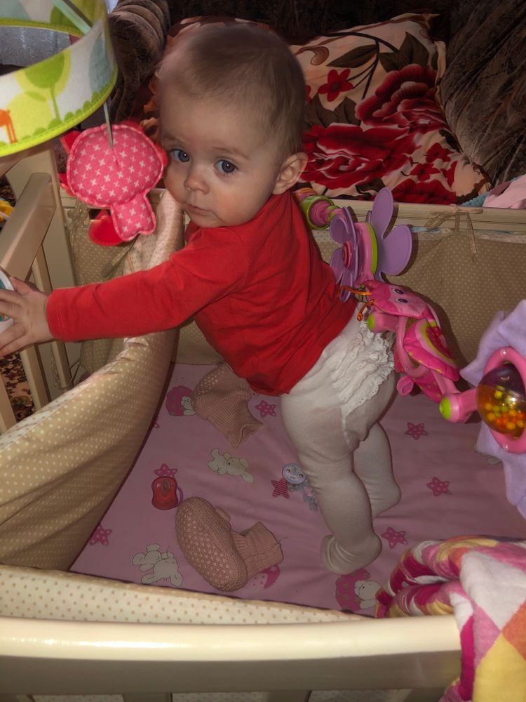 Вот и исполнилось Лизе 15 числа - 7 месяцев. 9 марта у нас появился первый зуб. Так же в конце февраля Лиза научилась сидеть без опоры. А вчера, 15, она встала с опорой в кроватке и похоже встала бы ещё раньше, если бы я в кроватку ее клала )) мы все ещё спим вместе )