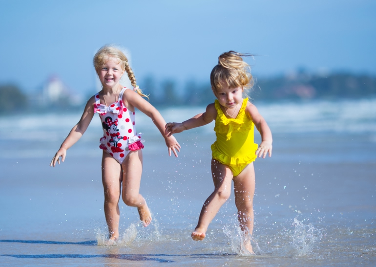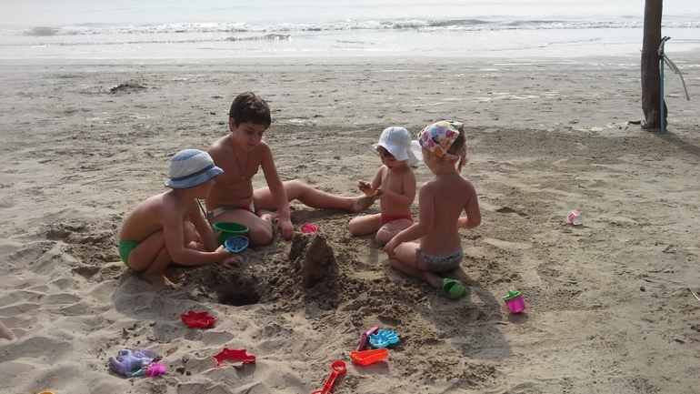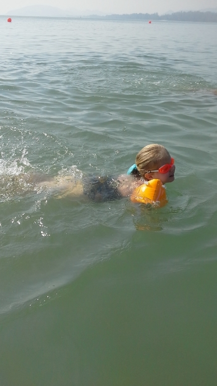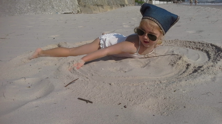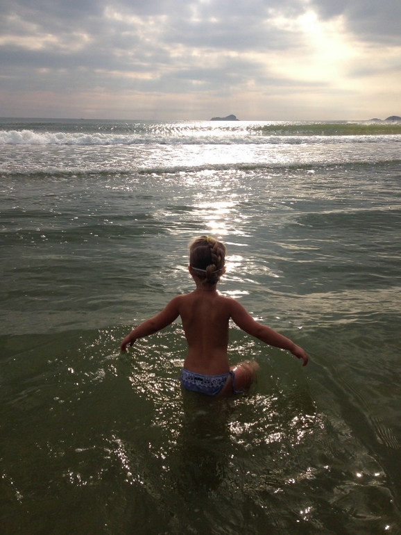 Как я и говорила, на этом пляже почти не было волн и дети стали купаться наконец-то, а то я уж думала, что мы приехать просто по бережку плавать))