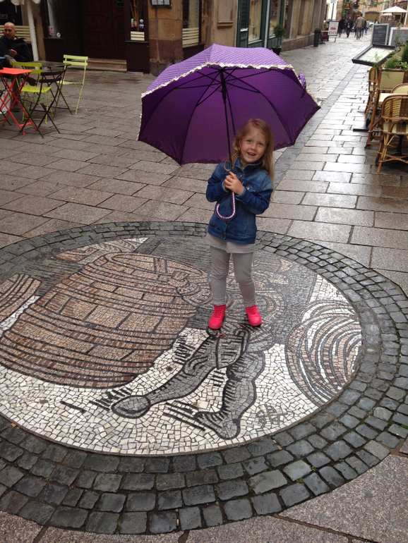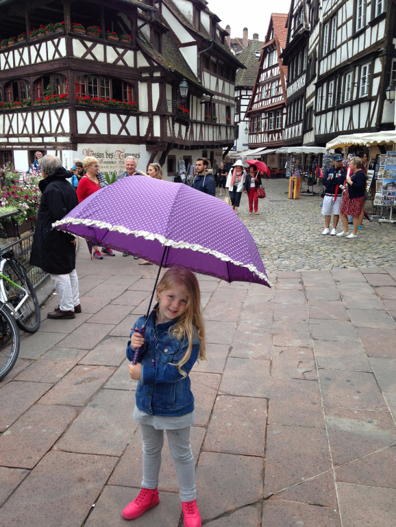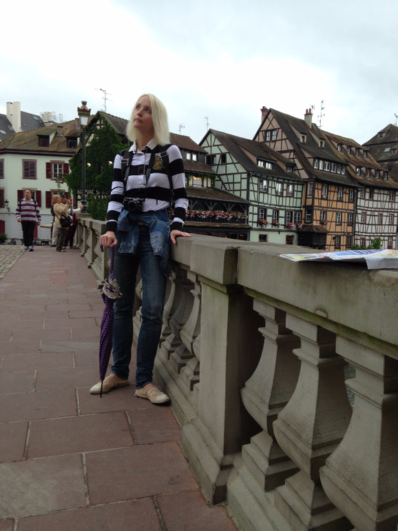 Погода конечно хмурая, но настроение моё это не омрачает. Пока едем по переулкам Страсбурга, осматриваем домики, уж очень красиво, поселились мы в центре. Машину запарковали и пошли гулять по городу, а зонтика то у нас нет...Так что приобрели свой страсбургский зонтик. Пока ждали продавца с зонтиком, померяли шляпу))