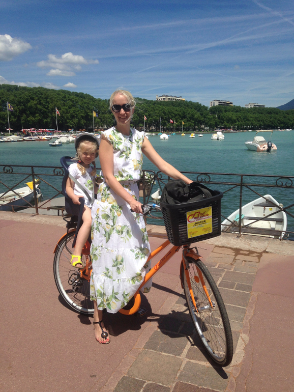 После обеда Саша решила и ножки в озере помочить, но не отважилась, попробовав рукой водичку... В отеле мы были только к ужину. Я уложила ребенка с айпадом, дала парацетамол,а сама поехала и машину заправлять и за продуктами в супермаркет. И тут я влюбилась во Францию окончательно. Подходит ко мне дама средних лет, биже к пенсионному и просто так говорит, ваша красота очаровала весь магазин=) Приятно, чёрт побери)))
