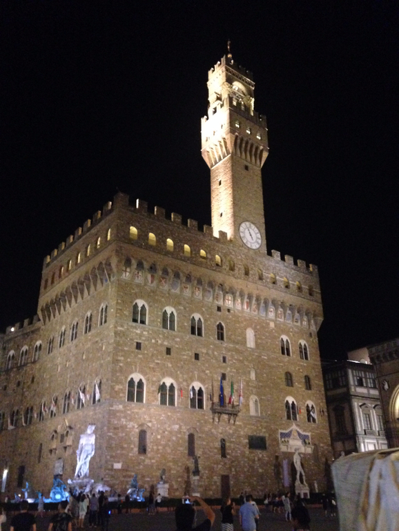 Нам хватило пожариться 2.5 часа, после этого солнце уже палило во всю, я видела, что я уже красная и мы решили плыть, то есть ехать дальше=) На воскресном рынке около пляжа накупили абрикосов в дорогу и поехали. Ох как тяжело вести машину после моря, когда ты расслаблен и сил почти нет, только бы поспать. Францию мы пересекли быстро и въехали в Италию. Около Флоренции были ограблены на 50 евро по трассе, что мы прошли от Генуи до Флоренции. Во Флоренцию мы въехали около 9 вечера и еще полчаса кружили в центре искали свой отель. По этим микроскопическим улочкам, где практически везде висят кирпичи. Жара стоит неимоверная, в конце концов я плюю на все и паркуюсь у Церкви Санта Кроче и оказывается, что наш отель в следующем переулке. Бросаем вещи и бежим ужинать=) Забегая вперед скажу, что во Флоренции за парковку мы там и не заплатили, бесплатно в центре-ляпота))))