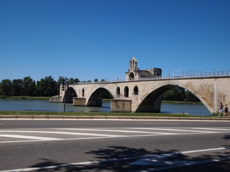 Развалины моста Сен-Бенезе, 12 века. Мост был большей частью разрушен сильным наводнением на Роне в 1669 году, после которого из 22 пролётов сохранились лишь четыре, и небольшая капелла