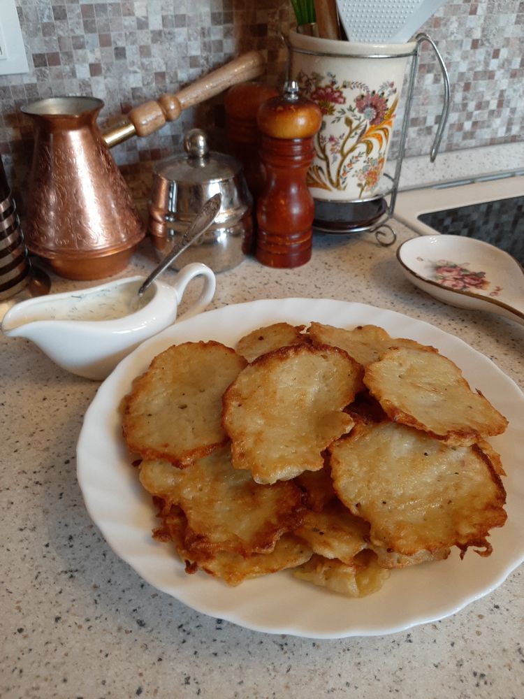 Натереть картошку и лук и хорошо отжать. Добавить яй